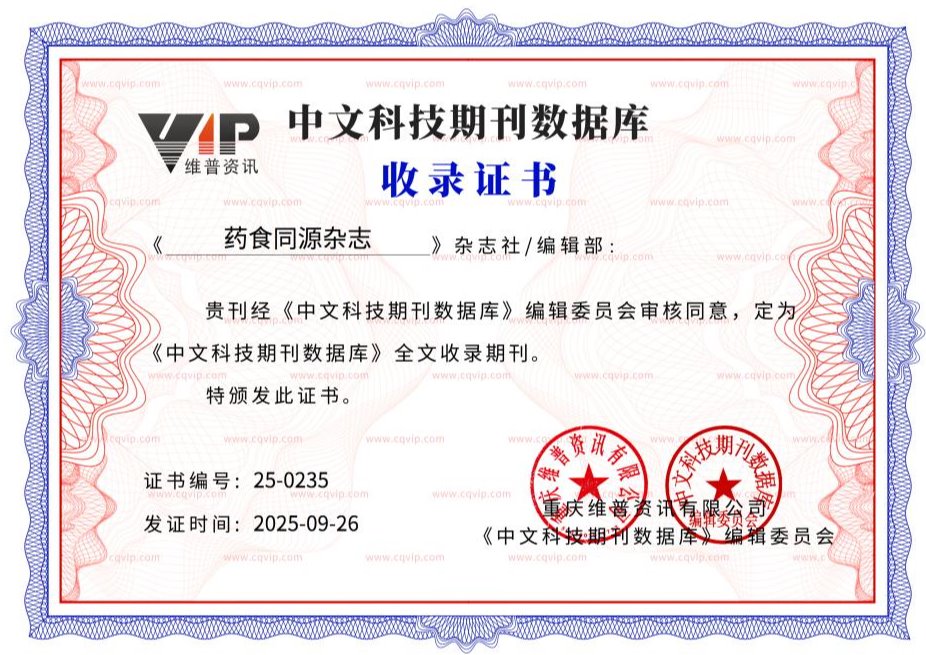 自创刊以来,期刊始终坚持严谨的学术标准与高质量的同行评议,积极推动药食同源学科的现代化与国际化发展。此次被国内三大支柱性学术数据库同步收录,是对其办刊方向与学术贡献的充分肯定,将为期刊吸引优质稿源、拓展读者群体奠定坚实基础,同时也意味着其所刊载的研究成果将进入主流学术传播渠道,获得更高效、更广泛的传播与引用。