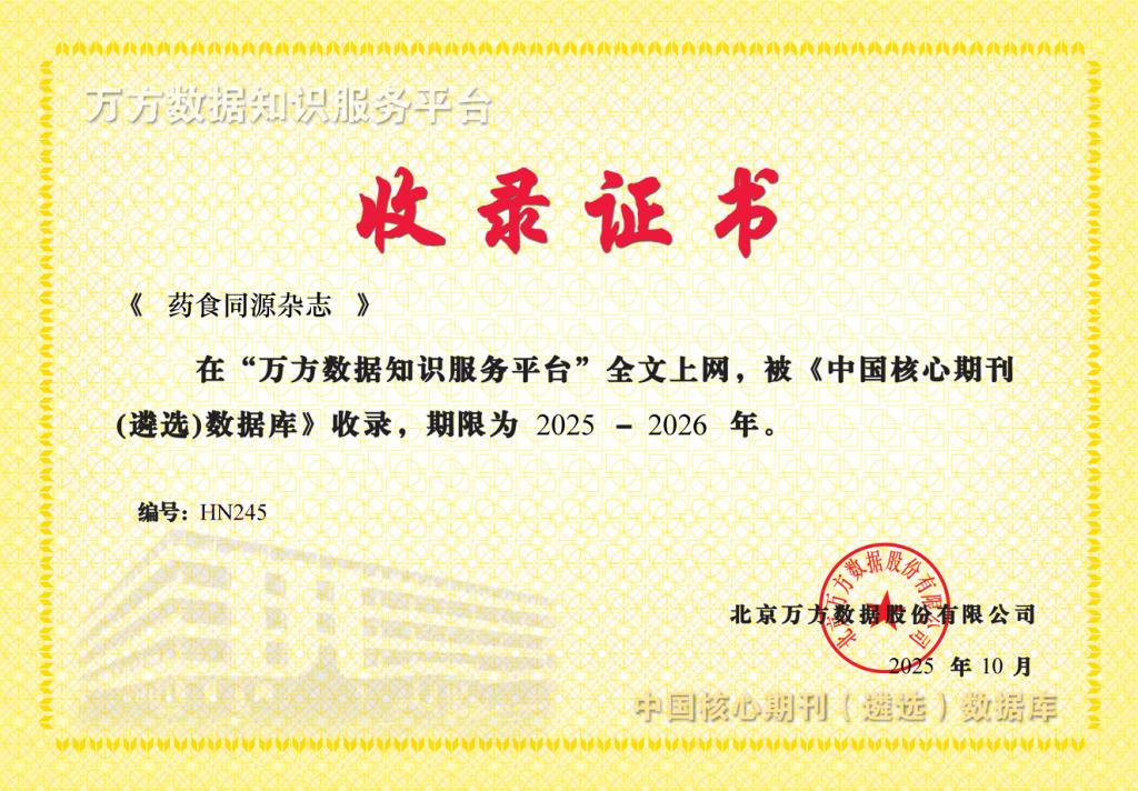 自创刊以来,期刊始终坚持严谨的学术标准与高质量的同行评议,积极推动药食同源学科的现代化与国际化发展。此次被国内三大支柱性学术数据库同步收录,是对其办刊方向与学术贡献的充分肯定,将为期刊吸引优质稿源、拓展读者群体奠定坚实基础,同时也意味着其所刊载的研究成果将进入主流学术传播渠道,获得更高效、更广泛的传播与引用。
